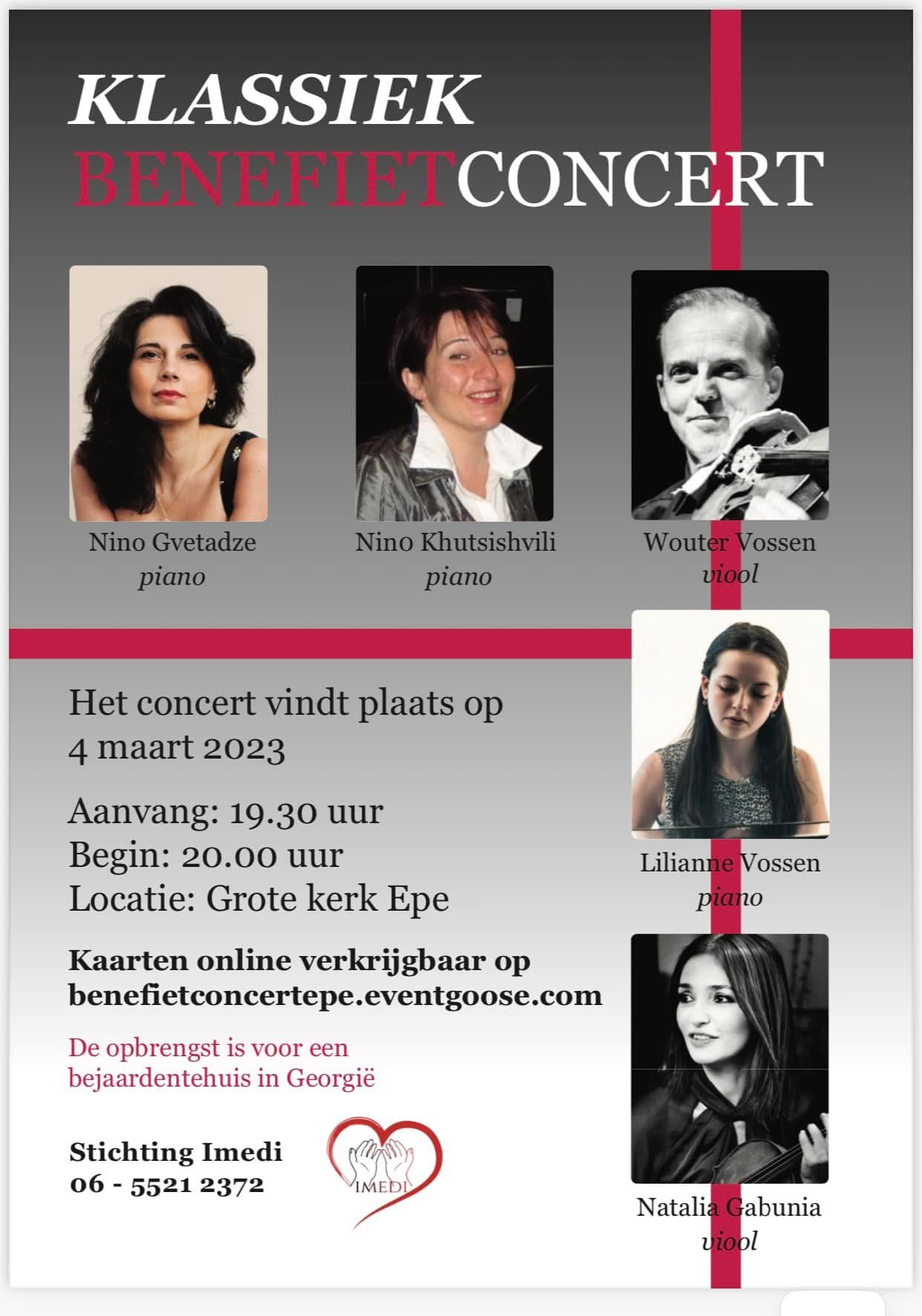 4 maart 2023 — Klassiek concert met Nino Gvetadze, Nino Khutsishvili, Wouter Vossen, Liliane Vossen en Natalia Gabunia